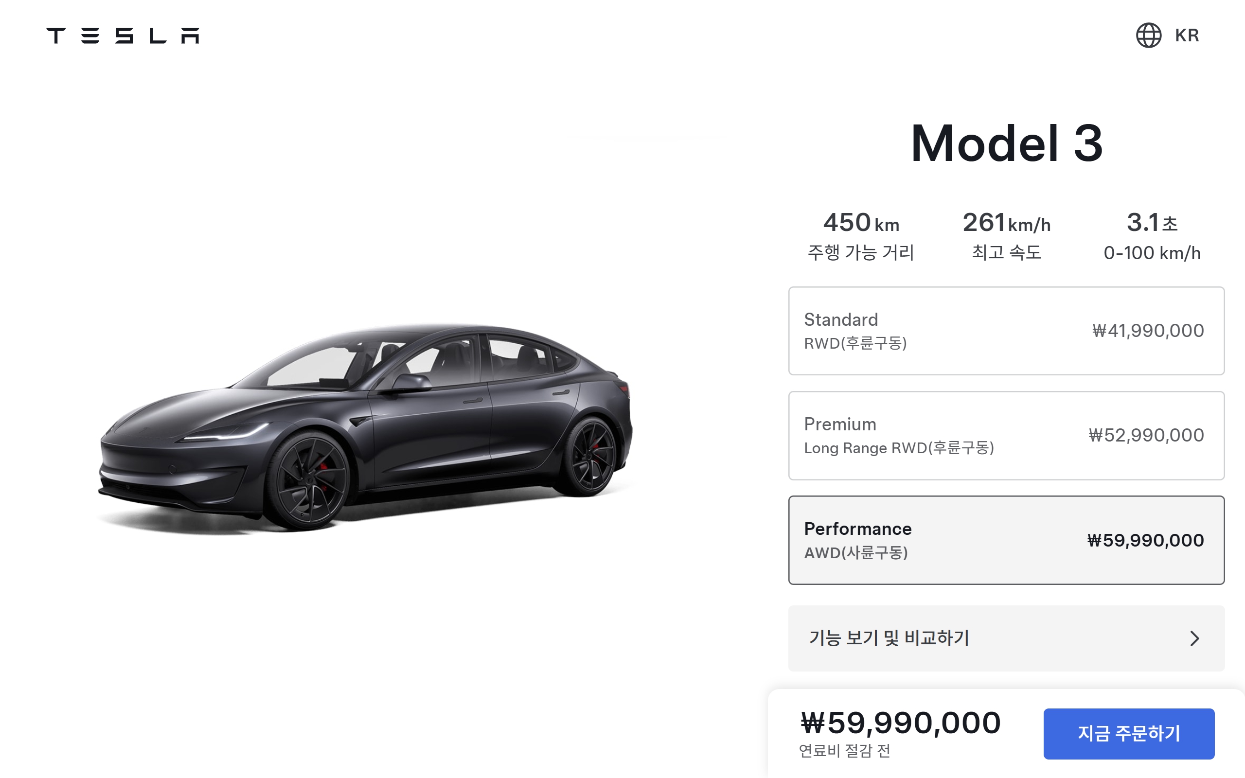 모델 3 퍼포먼스 AWD : 5,999 만원