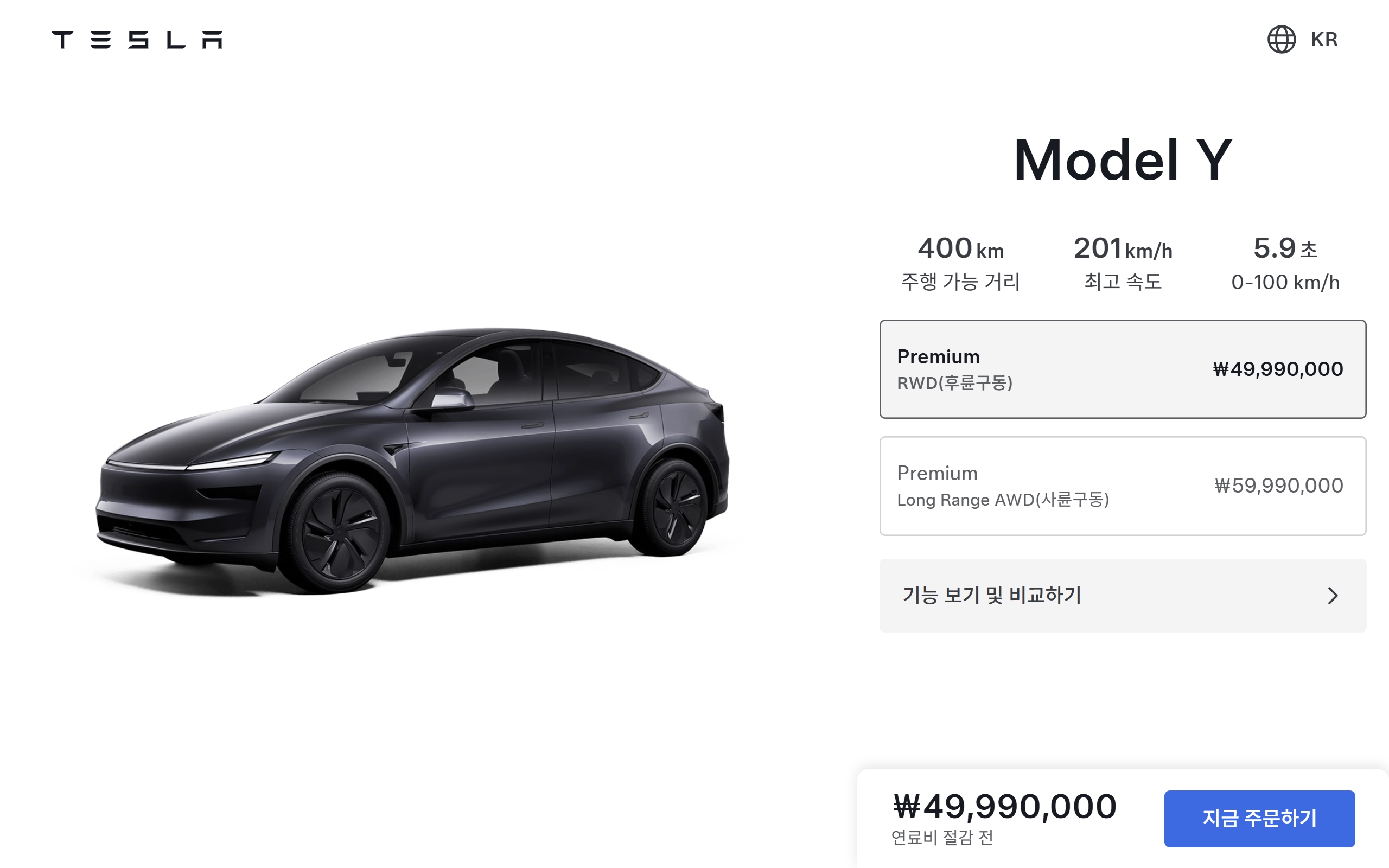 모델 Y 프리미엄 RWD : 4,999 만원