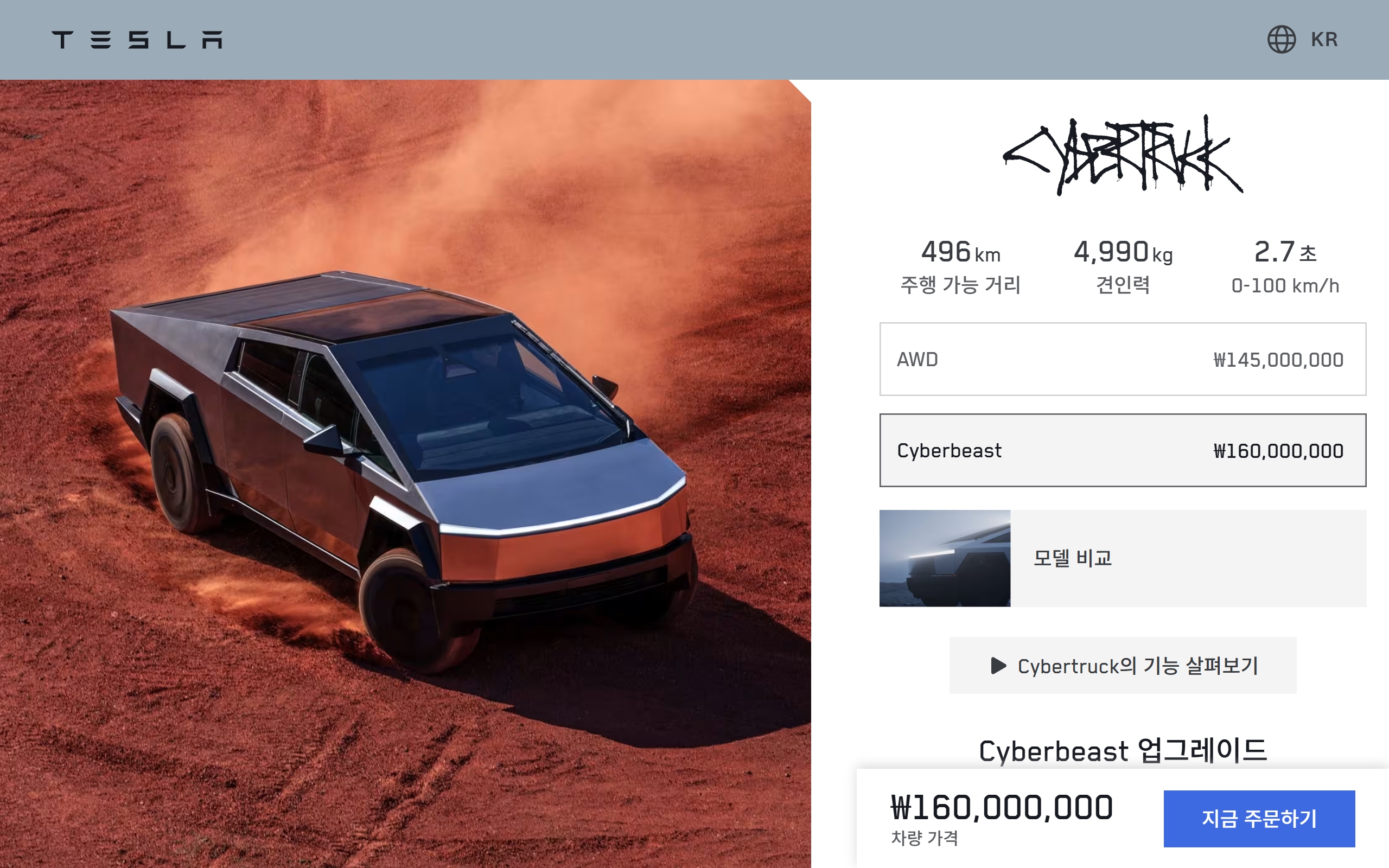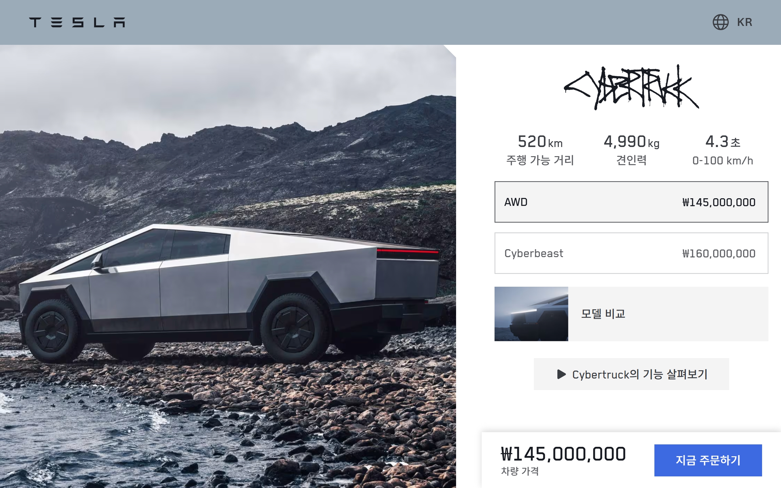 사이버트럭 AWD : 1억 4,500 만원
