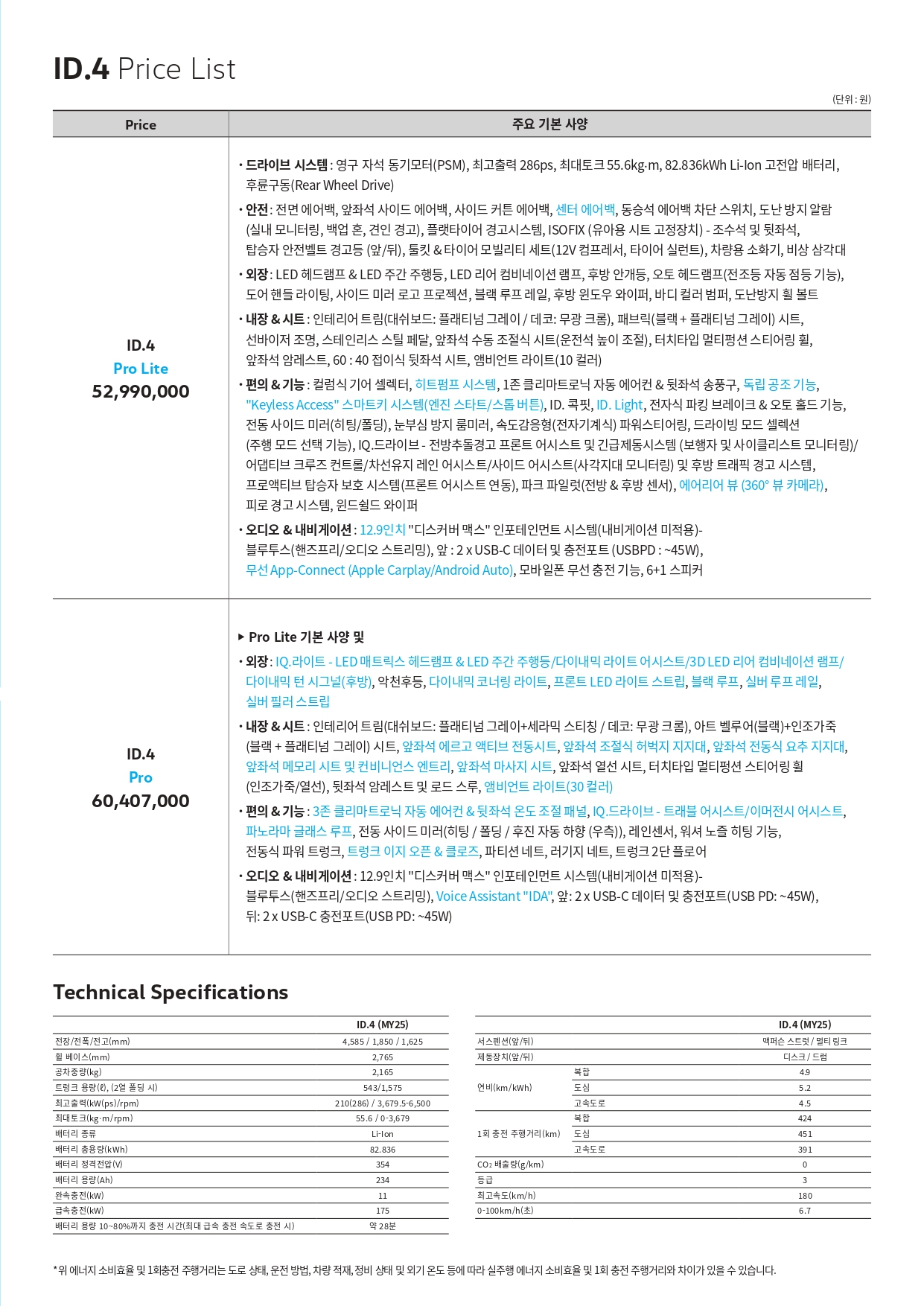 오늘은 이것으로 포스팅 마치도록 하겠으며, 혹시나 필요하신 분들을 위해, 26년식 ID4 가격표 겸 카탈로그 첨부 드립니다.