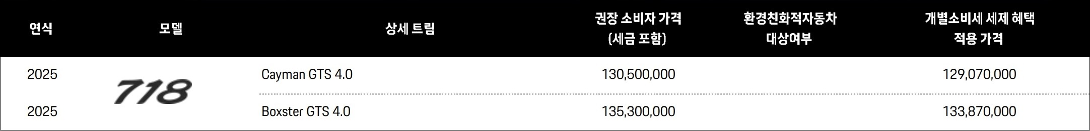 2025 718 가격표 :