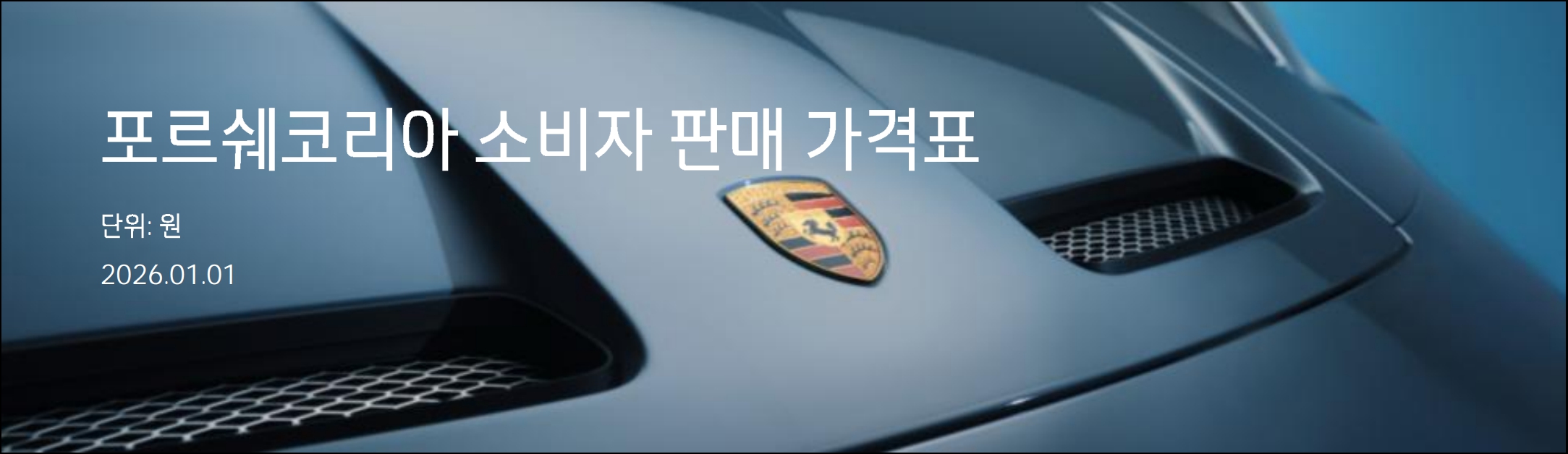 오늘은 여러분들께 2026년 1월 포르쉐 전차종 가격표 를 소개하는 시간을 가져볼까 합니다.