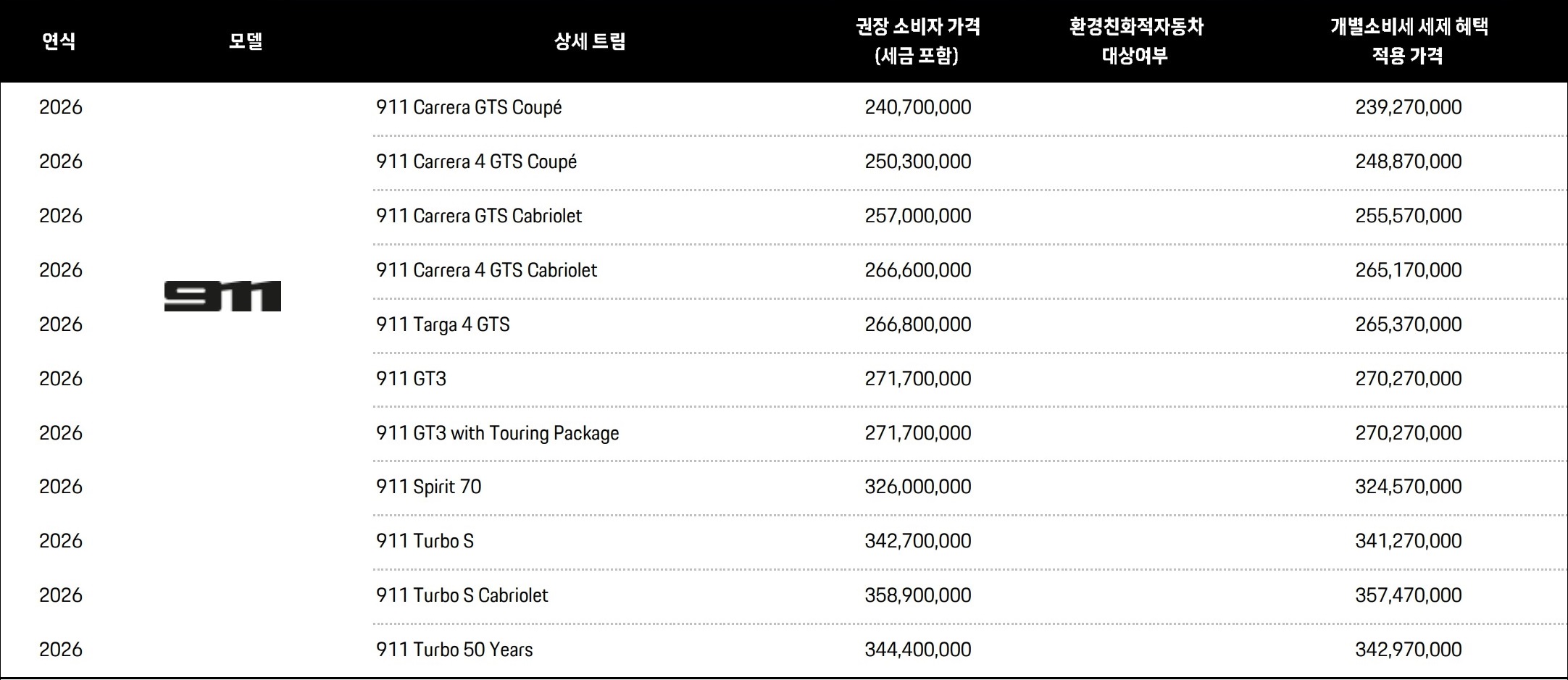 2026 911 가격표 :