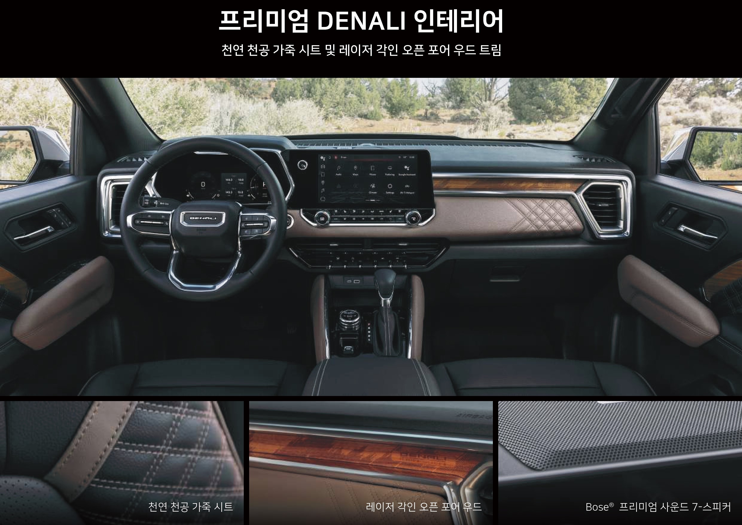 이번에 수입되는 캐니언의 경우, GMC에서 각 차종별 최상위 트림인 드날리 트림만을 출시하였고, 덕분에 옵션이나 마감이 고급집니다.