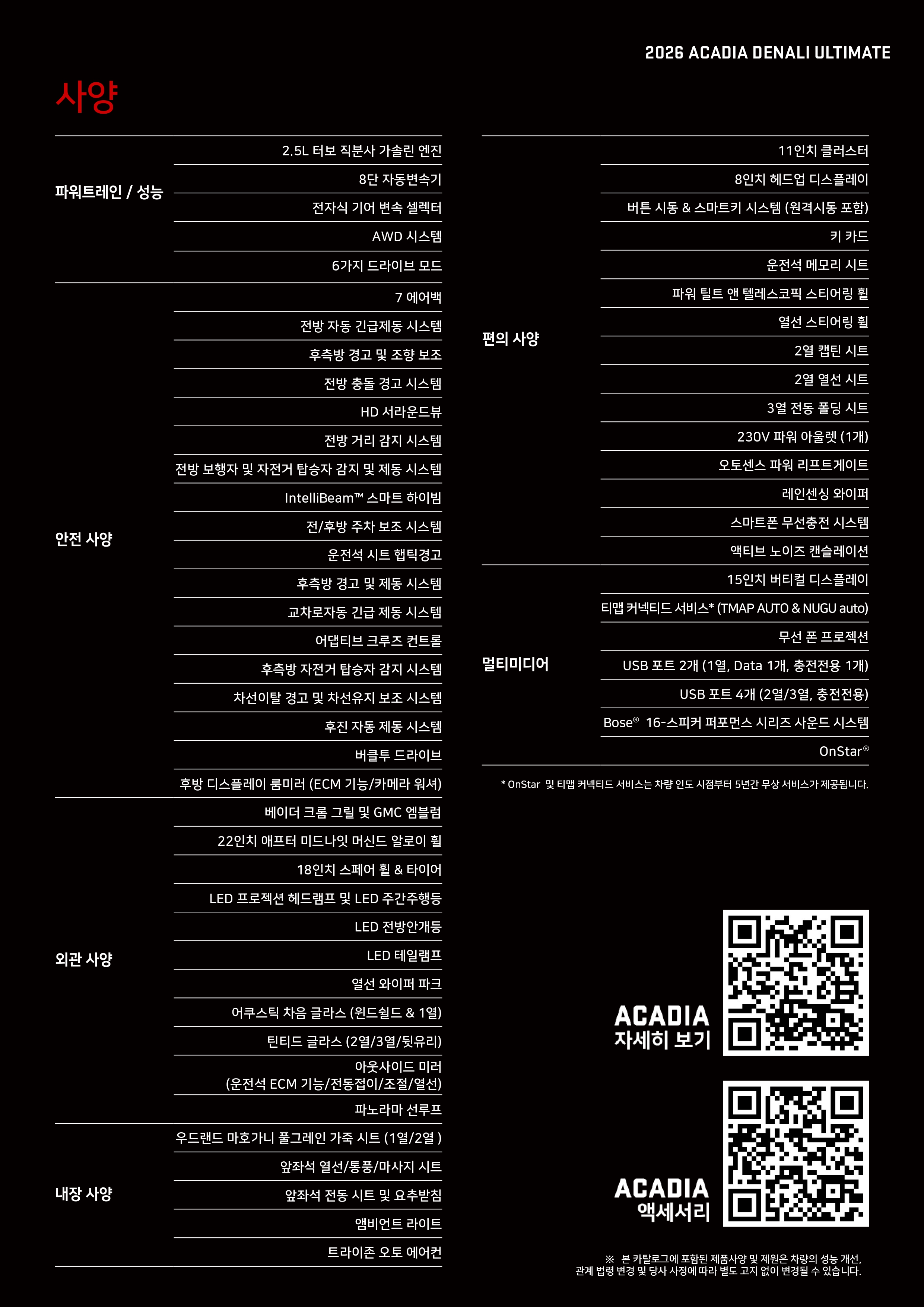▼ 2026 GMC 아카디아 옵션표 ▼