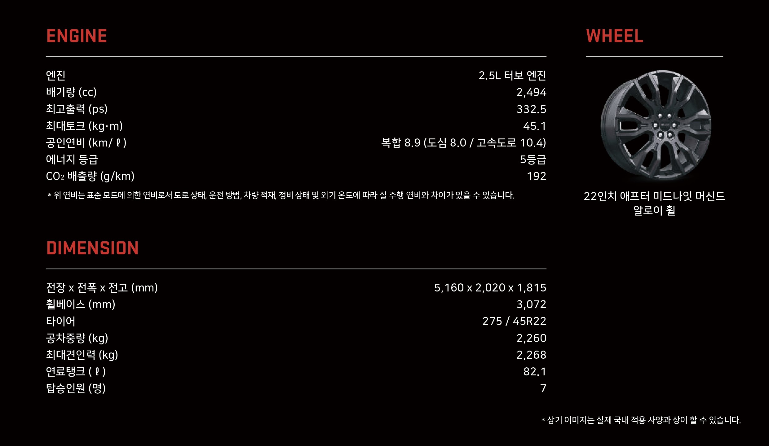 마지막으로 제원입니다.