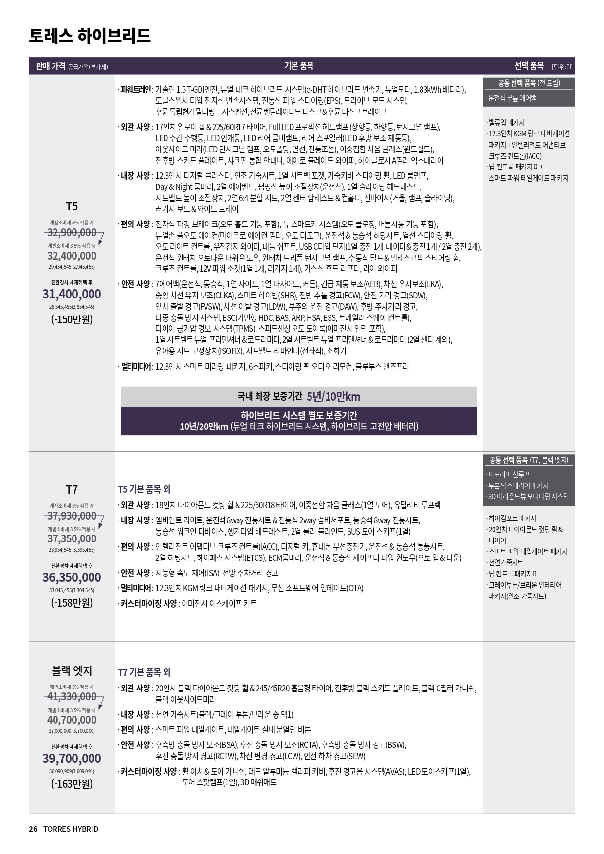이것으로 오늘 포스팅 마치며, 아래에 26년 2월 KG 모빌리티 전차종 가격표 공유드립니다.