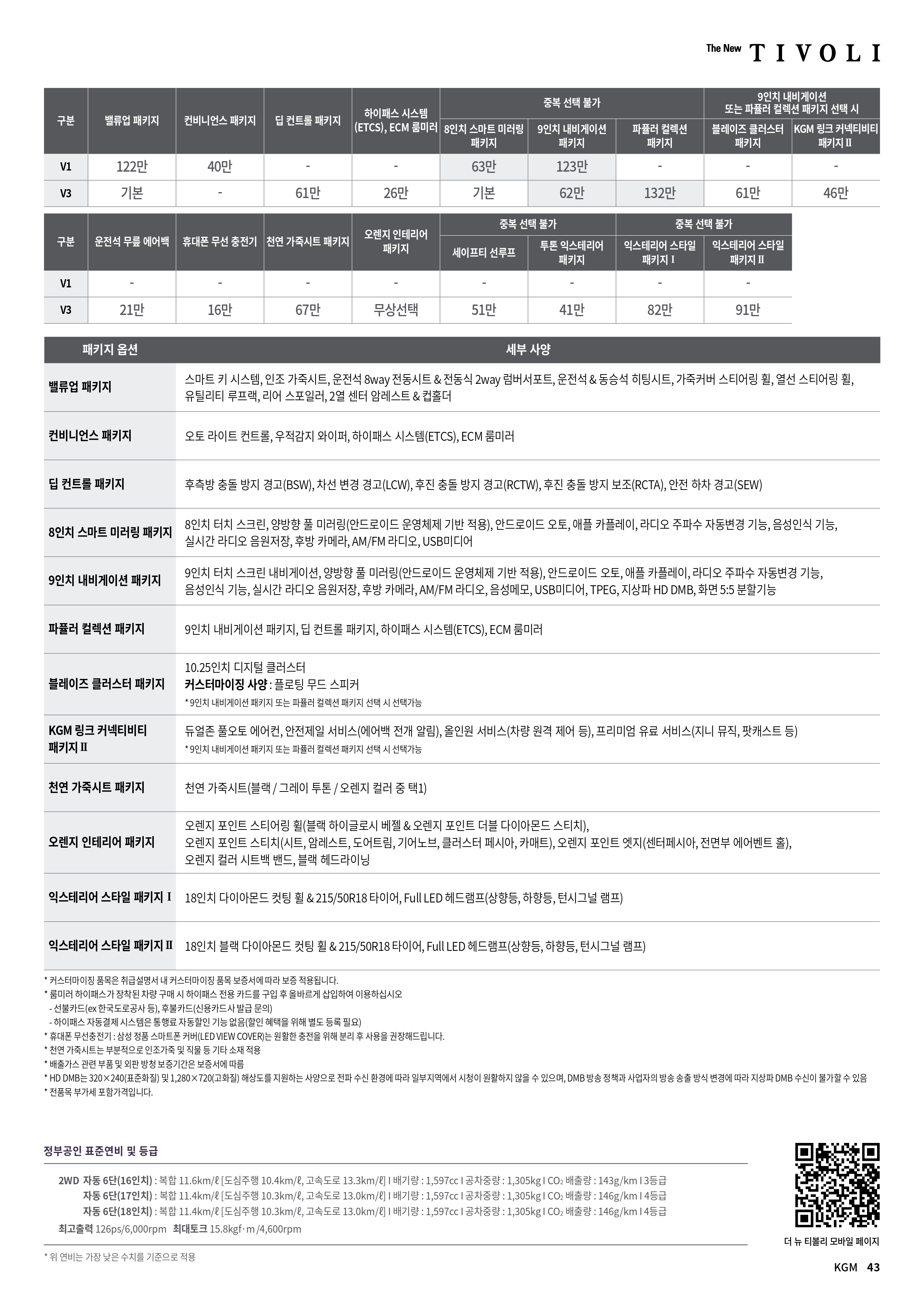 티볼리 V1 혹은 V5 트림에 밸류업 패키지와 8인치 미러링 패키지 혹은 9인치 내비만 추가하더라도, 사실 옵션 측면에서는 충분하거든요.