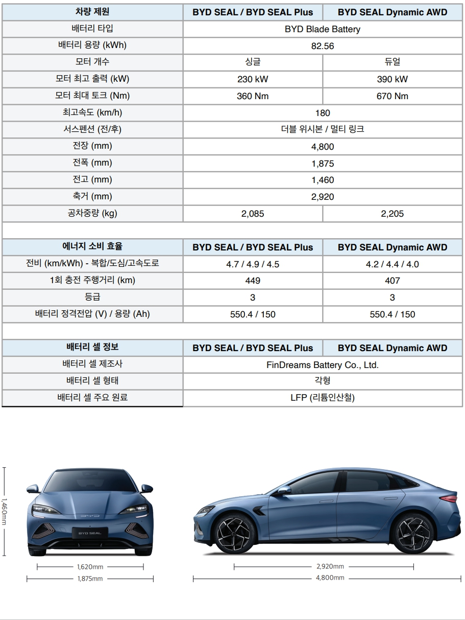 2026 BYD 씰 다이나믹 AWD : 4,690 만원