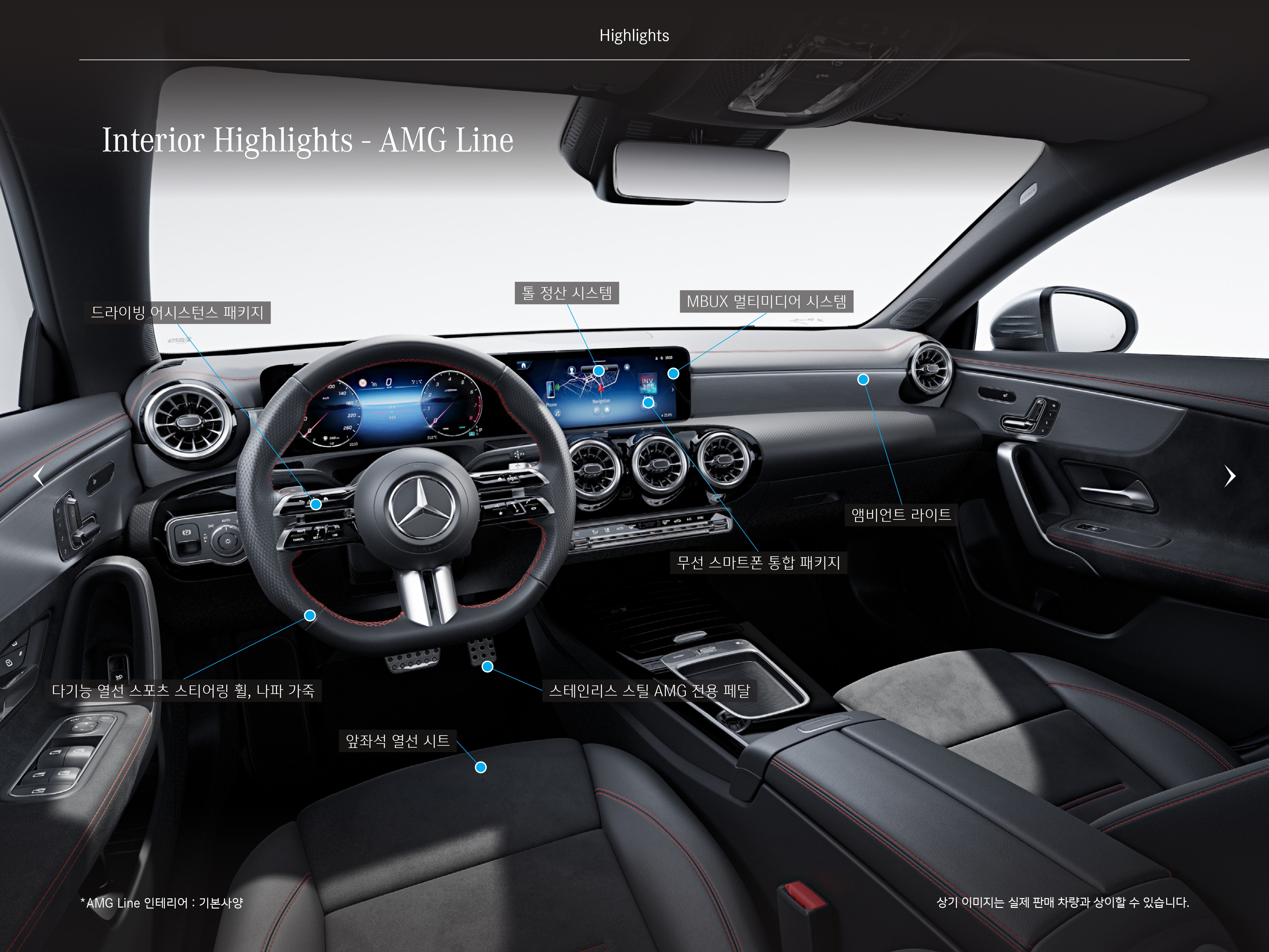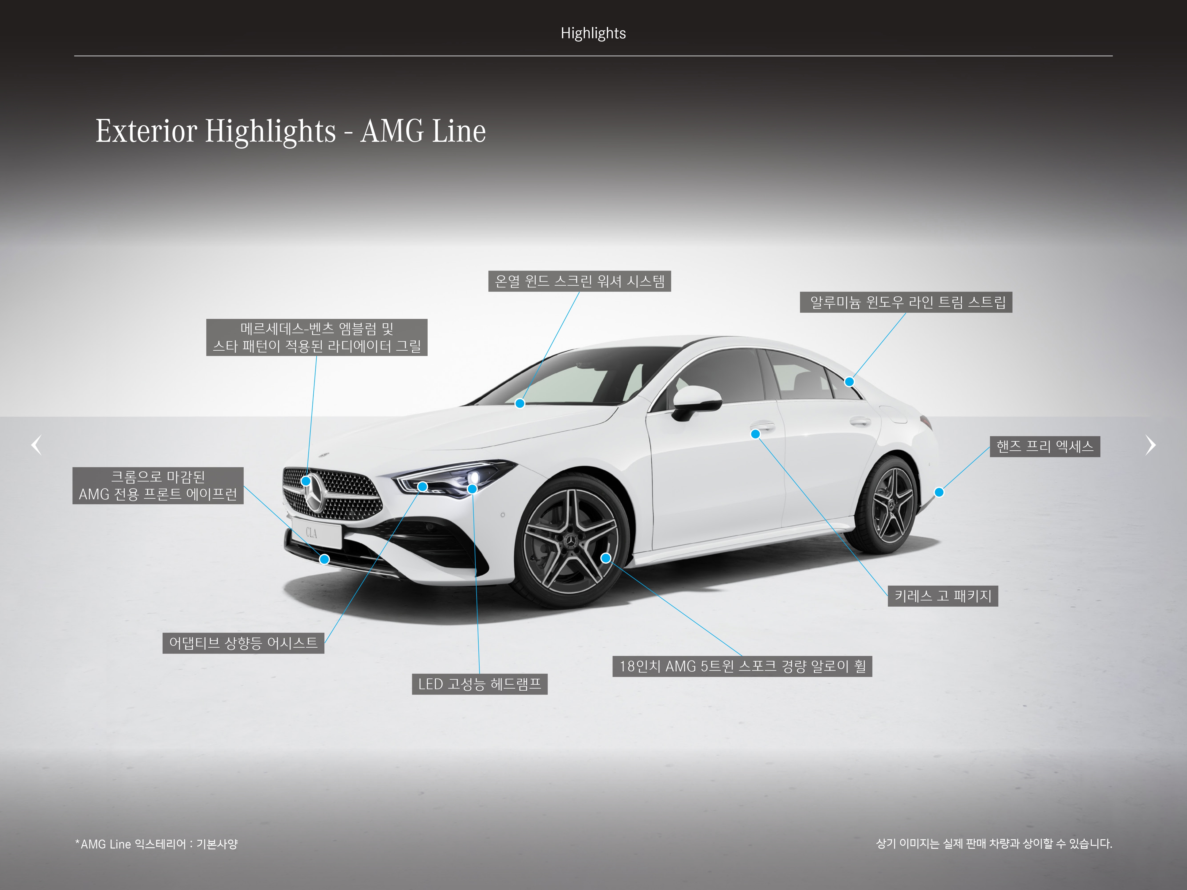 아래는 CLA250 AMG 라인의 옵션을 간략하게 설명한 자료입니다.