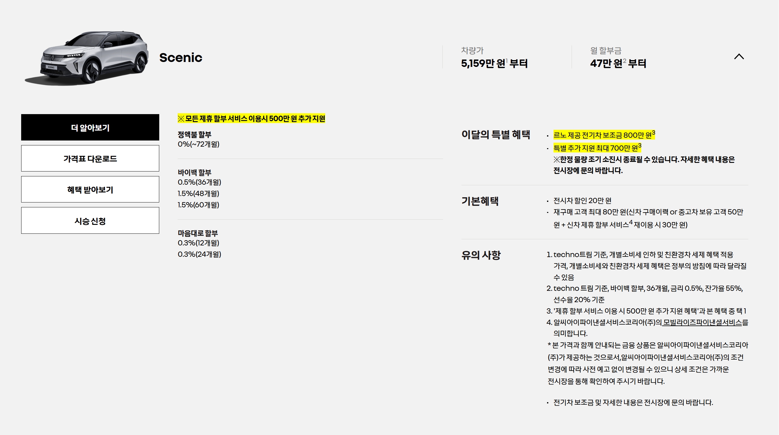 최근 몇 달 어마어마하게 프로모션을 하고 있는 세닉인데, 지난달과 마찬가지로 1500만원 할인입니다.