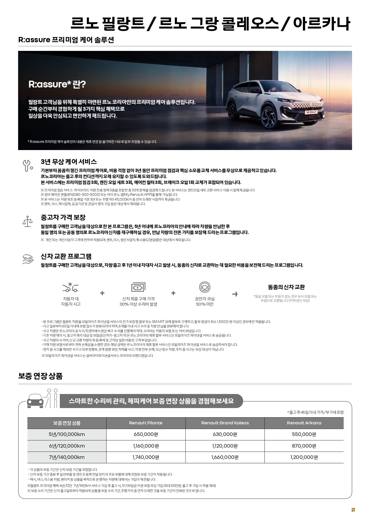 마지막으로, 르노 보증연장 상품인 해피케어 가격표인데, 국내 생산 차량만 해당됩니다.