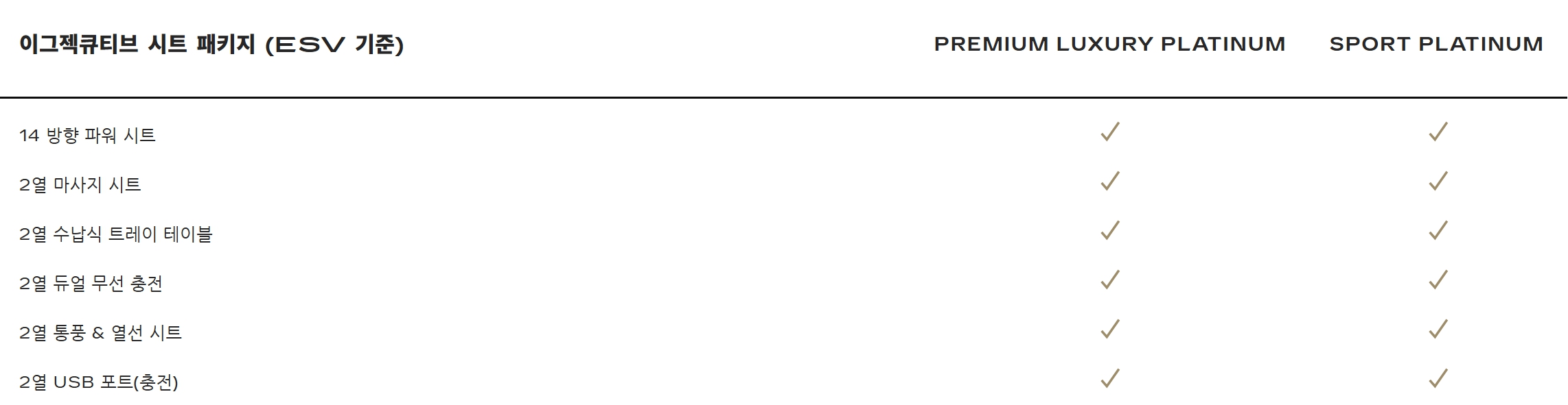 가격표 잘 보시면 아시겠지만, 프리미엄 럭셔리 플래티넘과 스포츠 플래티넘 트림의 가격은 동일합니다.