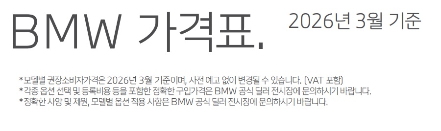 오늘은 이것으로 포스팅 마치며, 아래에 2026년 3월 BMW 전차종 가격표 공유드립니다.