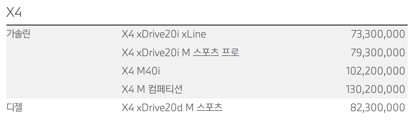 BMW X4 가격표