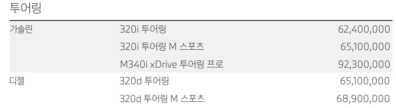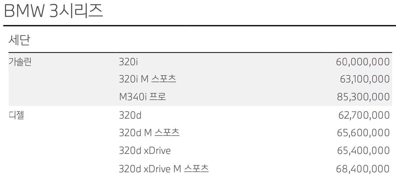 BMW 3시리즈 가격표