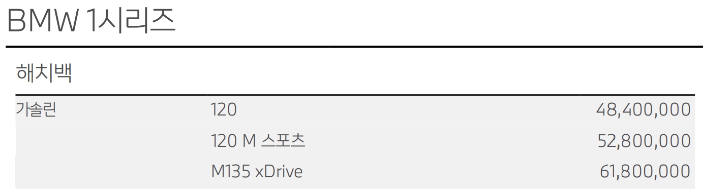 BMW 1시리즈 가격표