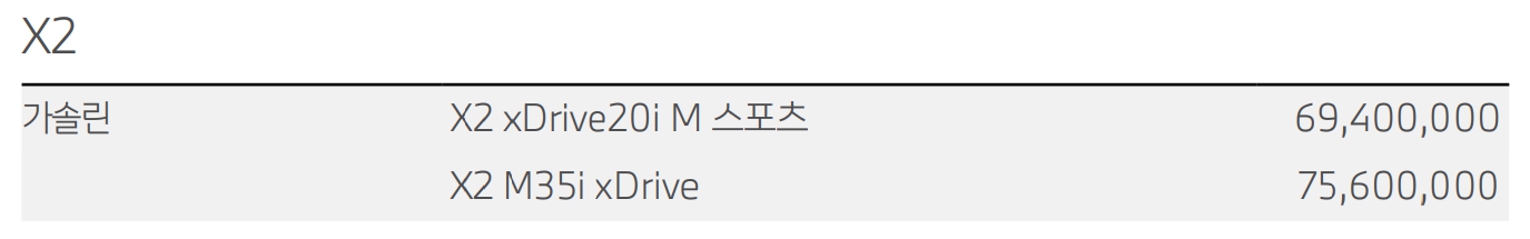 BMW X2 가격표