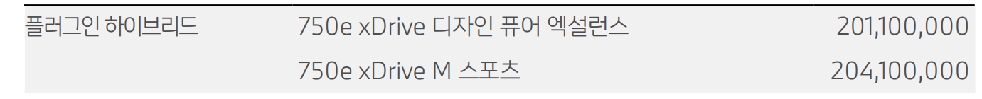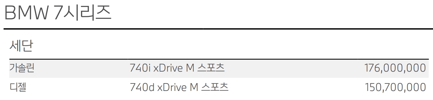BMW 7시리즈 가격표