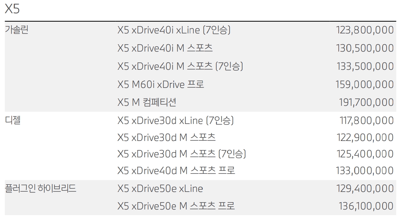 BMW X5 가격표