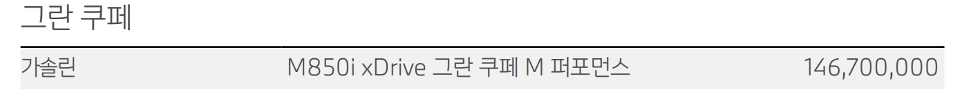 BMW 8시리즈 가격표