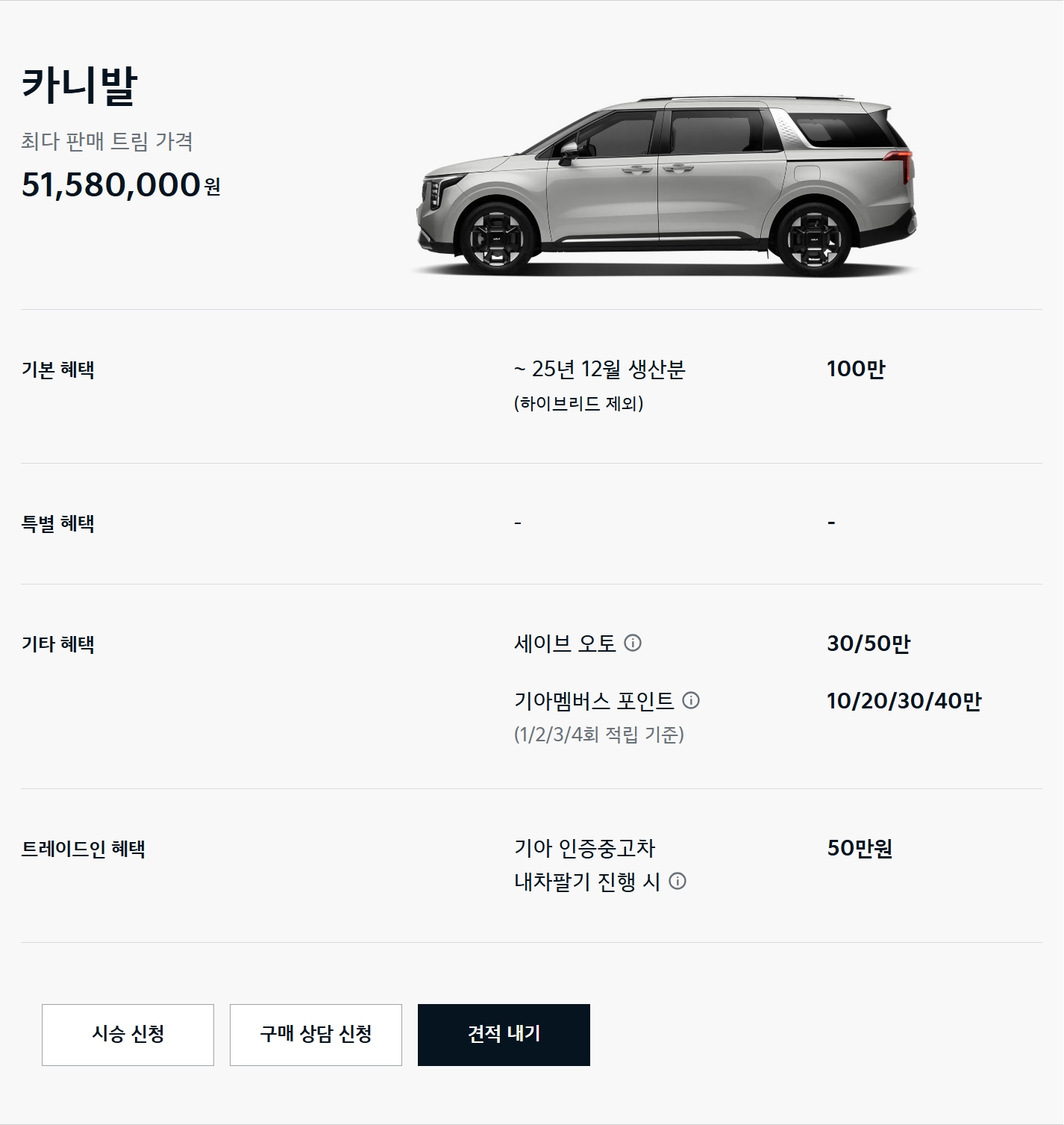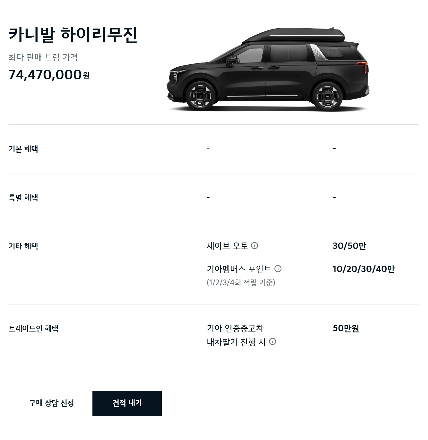 카니발이 할인을 잘 안 하는 차종은 맞지만, 최근 들어 할인을 시작한 모델이기도 해서, 할인 자체가 엄청 좋다고 말씀드리기는 어렵습니다.