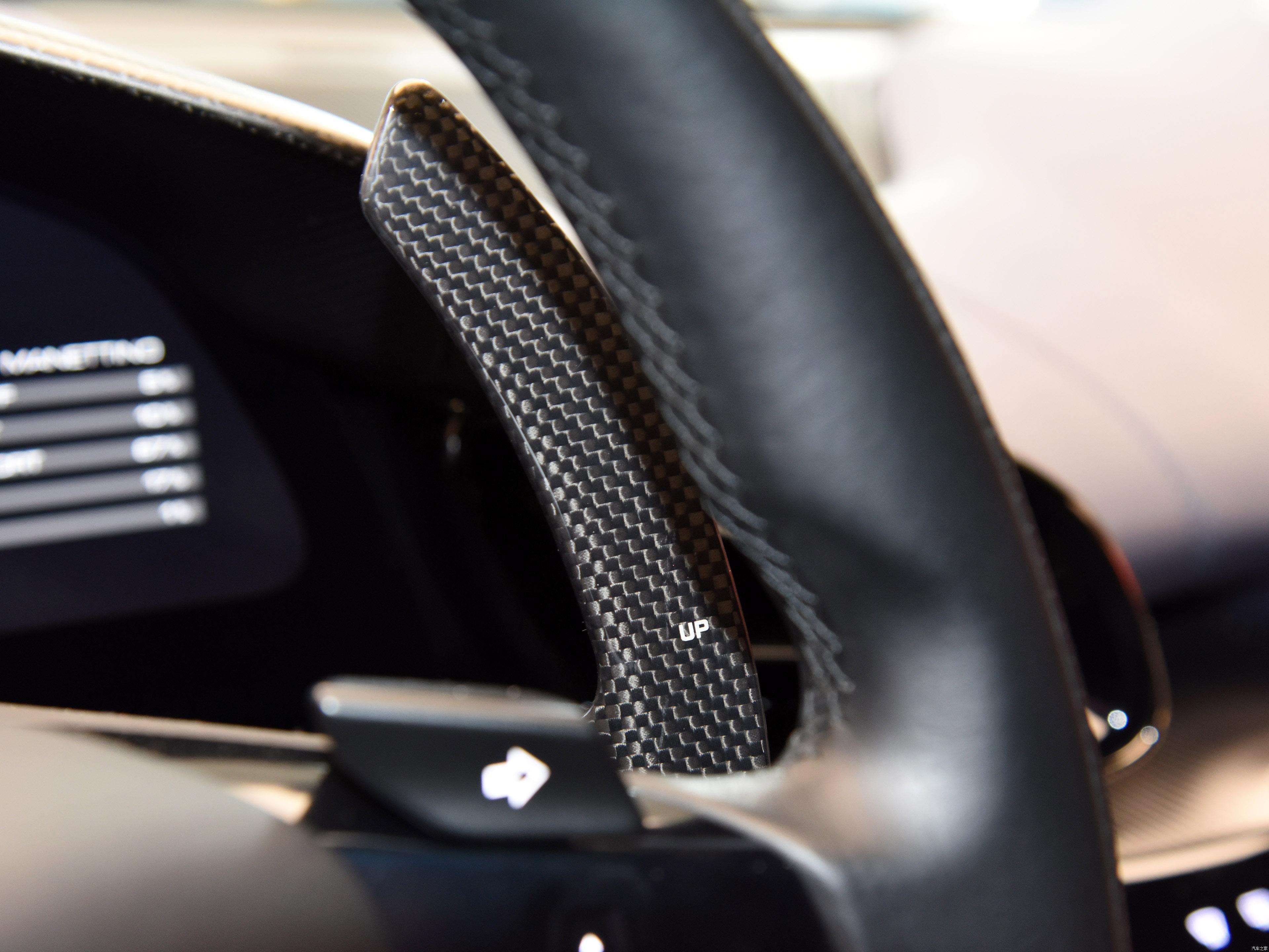 페라리와 마세라티와 같은 고성능 차량의 전유물인 카본 패들 시프트가 떡하니 자리 잡고 있습니다.
