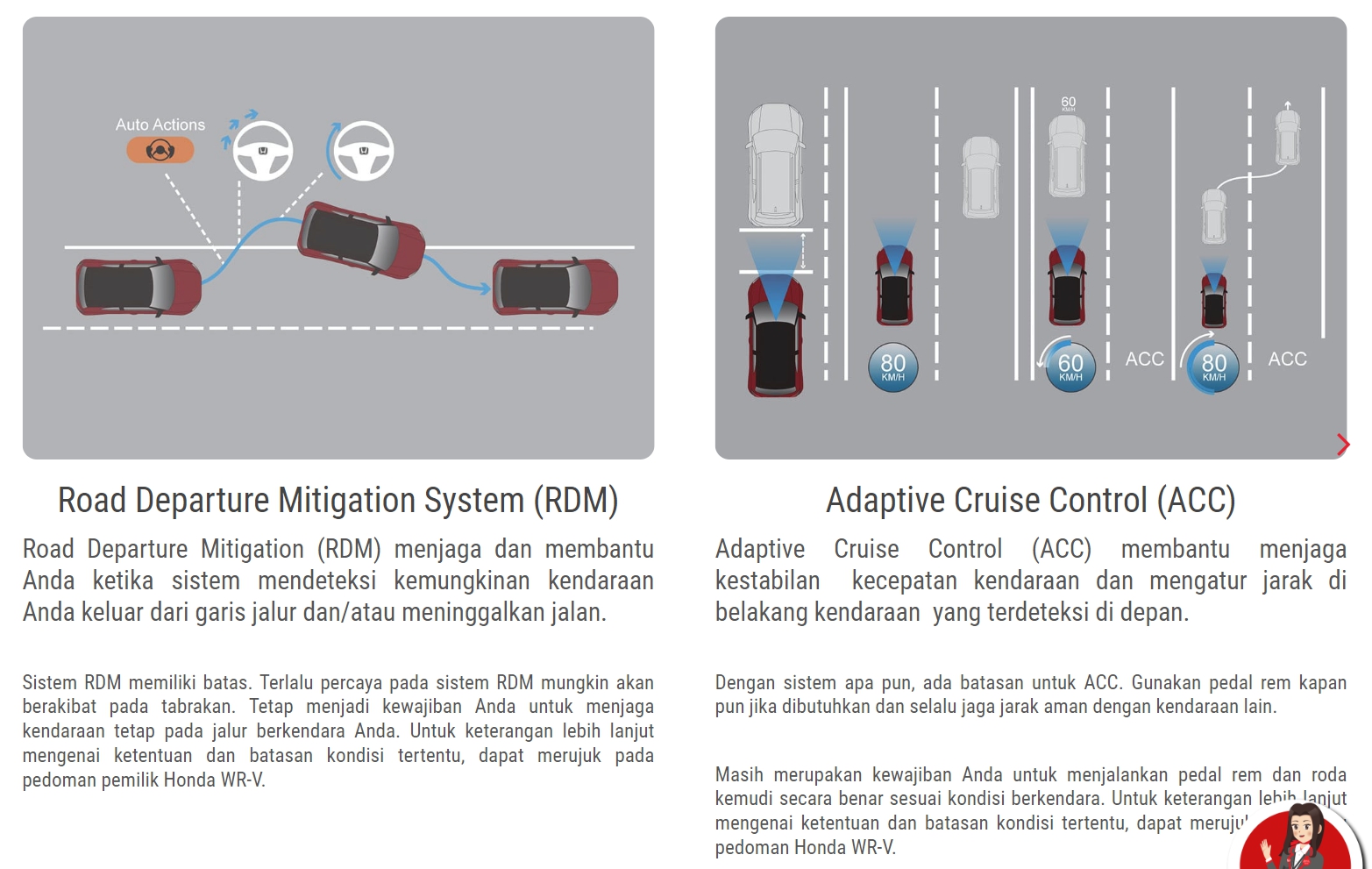 차선 이탈 경고 시스템(RDM) 및 어댑티브 크루즈 등