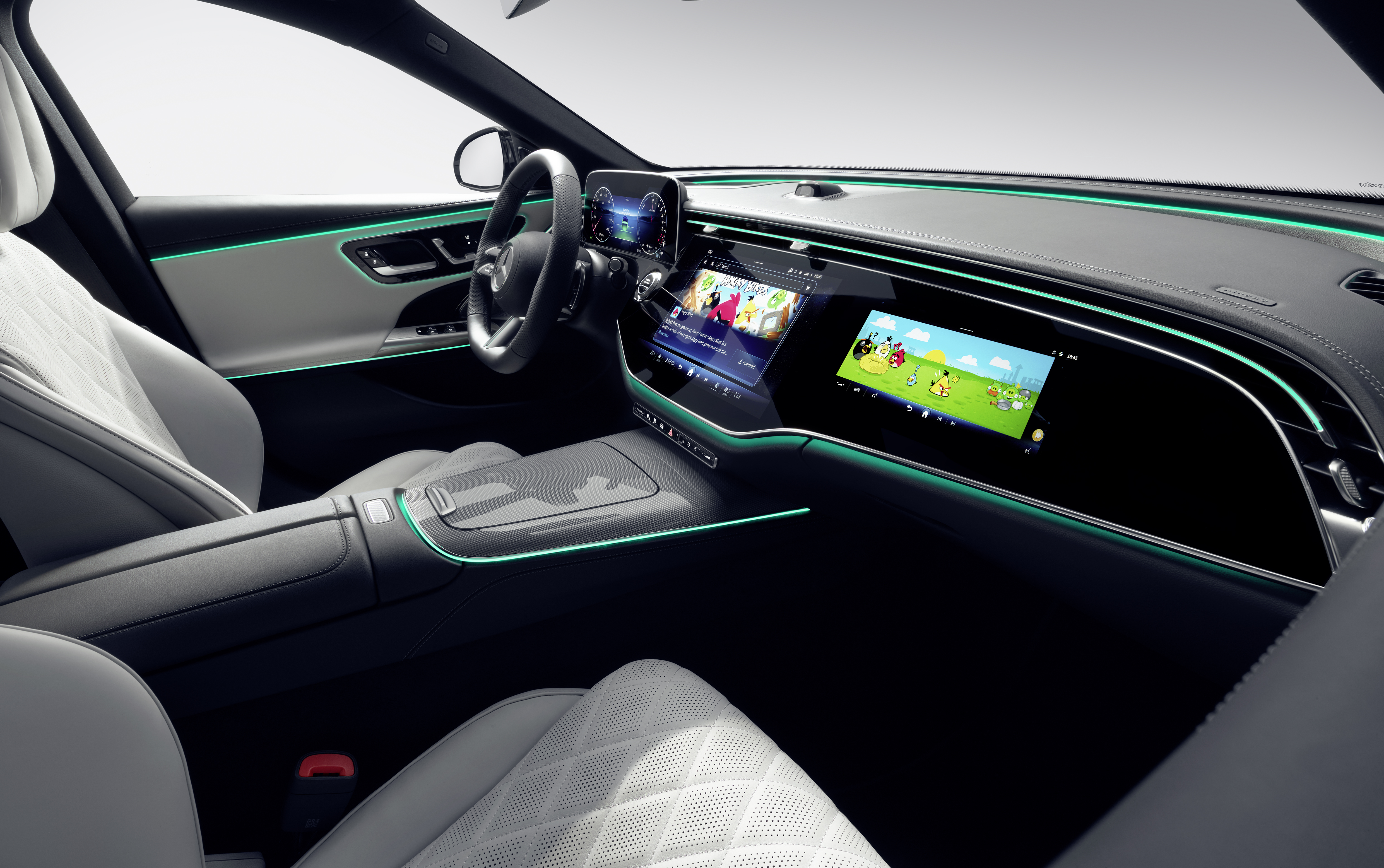 신형 E클래스 인테리어의 핵심은 MBUX 엔터테인먼트 플러스라 불리는 완전 새로운 엔터테인먼트 패키지에 있습니다.