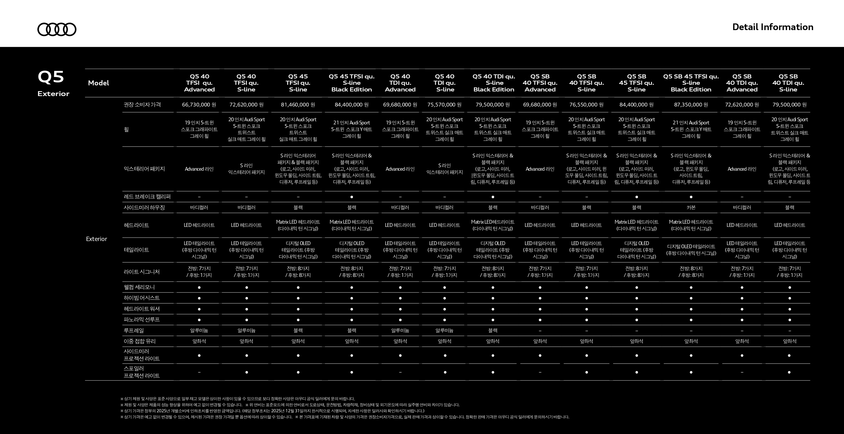 안녕하세요!오늘은 여러분들께 2025 아우디 Q5 가격표 및 카탈로그를 소개하는 시간을 가져볼까 합니다.음....사실은 25년형 Q5 소개를 드리는 게, 이번이 세 번째인데요!계속 소개해 드리는 이유는 가격표 및 카탈로그가 계속 업데이트 되기 때문입니다. 그 첫 시작은 올해 7월, 풀체인지를 마친 25년형 Q5가 처음에 한국 시장에 런칭하였을 때입니다.다만, 이때 욕을 꽤나 많이 먹었던 것이, 요즘은 기피하는 디젤 사양만 먼저 출시하였기 때문입니다. 그러다가, 8월이번에는 Q5 스포트백 모델을 출시를 하였는데, 그때도 또 디젤만 출시를 하였습니다. 그리고, 이번 달인 9월드디어 디젤 사양에 이어 가솔린도 출시를 하였습니다.일반 Q5 뿐만 아니라, Q5 스포트백도 함께요!거기에 ..